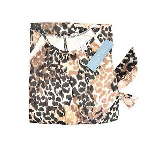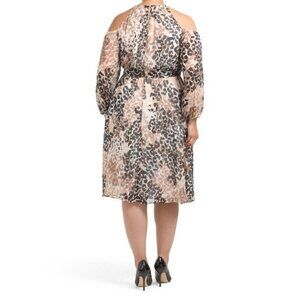 London Times Womens Black and Ivory Leopard Print Cold Shoulder Chiffon Blouson Midi Dress Plus Sz 2X NWT