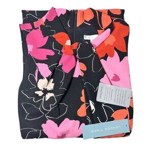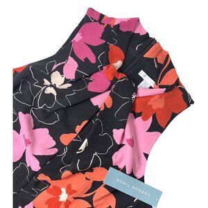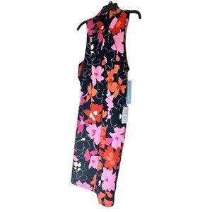 London Times Womens High Neck Black Pink Tropical Floral Sleeveless Sheath Dress Sz 14 NWT