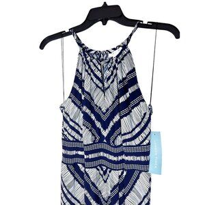 London Times Womens Blue and White Diamond Print Halter Maxi Dress Sz 10 NWT