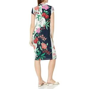 London Times Women's Floral Print Midi Sheath Dress, Blue/Multicolor Size 14