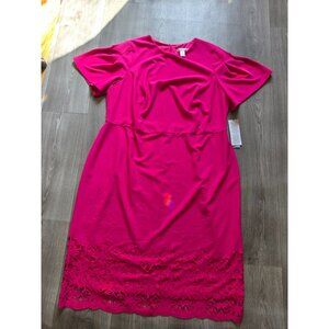 London Times Womens Pink Midi Dress With Laser Cut Hem NWT 20w