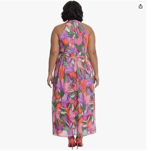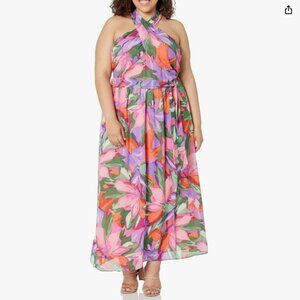 London Times Women's Plus Twist Neck Halter Maxi Dress, Size 20