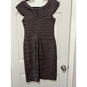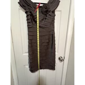 London Times Women’s Sable Brown Flutter Sleeve Cocktail Dress w/Rosette Size 6