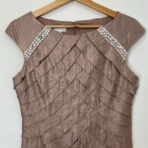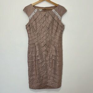 London Times Womens Size 10 Sheath Dress Blush Rose Multilayer Party Midi Length