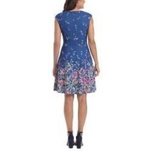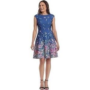 London Times Women’s Size 6 Cap Sleeve Fit and Flare Dress Blue Multicolor