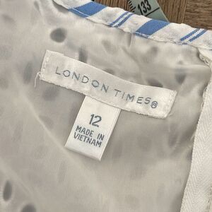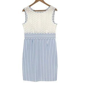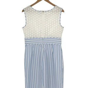London Times Women's Sleeveless Laced Stripe Eyelet Dress White Blue Size 12