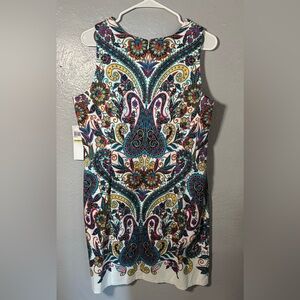 London Times Women's Sleeveless Paisley Print Shift Cotton Sateen Dress. SZ 14.
