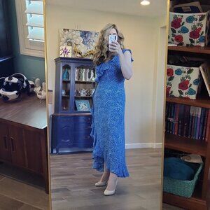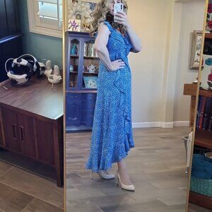 London Times Women's Soft, Flowy Feminine Ruffle Hi-Low Faux Wrap Maxi Dress 10