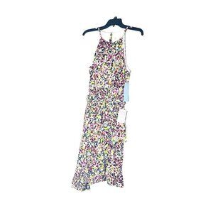 London Times Womens White Multi Floral Halter Asymmetric Flounce Dress Sz 10 New