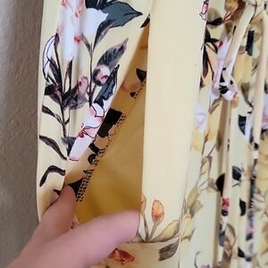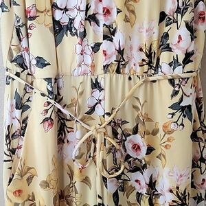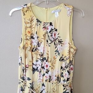 Like new London Times yellow floral printed wide leg jumpsuit with elastic waistband for stretch and has pockets and zipper in back