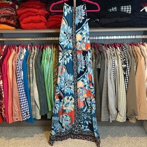 London Times blue/coral floral sleeveless elastic waistband maxi dress size 4