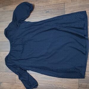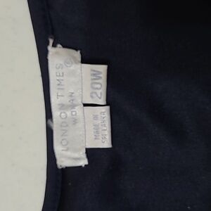 London Times navy blue dress with eyelet details size 20W. The dress is lined but the sleeves are not. Hasbl a keyhole neck.