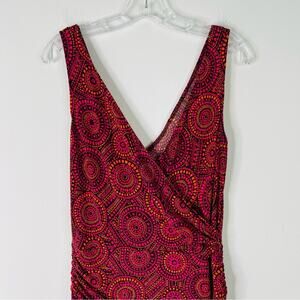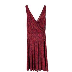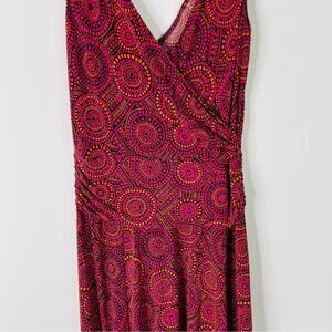 London Times pink brown retro stretchy 60s 70s midi dress 12