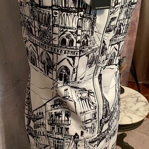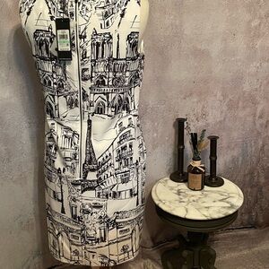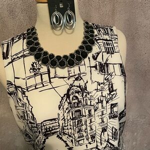 Fun kaleidoscope design in pinks, greens, lavender, and more. Invisible back zipper. Paired with green earrings and green bracelet to complete your look. Fabric has 3% spandex for just enough stretch.