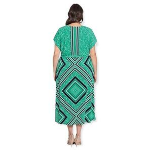 London Times Green and Navy Dot Flutter Sleeve Maxi Dress