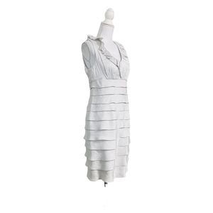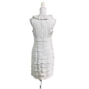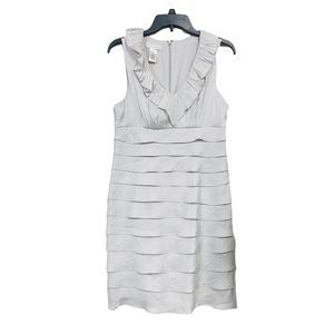 London Times Silver Layered & Ruffled Neckline Lined Casual Trendy Chic Dress