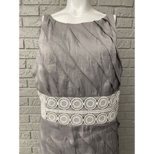 London Times Women Gray Sleeveless Layered Shift Dress With Lace Detail Size 14