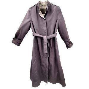 London Towne London Fog Vintage Gray Purple Sherpa Removable Lined Belted Trench Coat