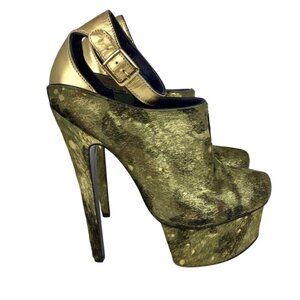 London Trash Gold Metallic High Heel Platforms Size8 Stripper Vixen Sexy MobWife