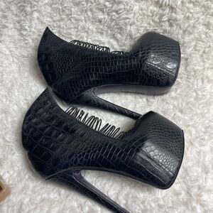 London Trash LT Crime leather Black reptile embossed stiletto platform heels SZ7
