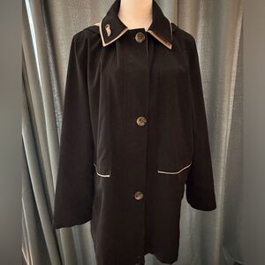 London fog trench rain coat removable hood zipper navy tan women’s size large