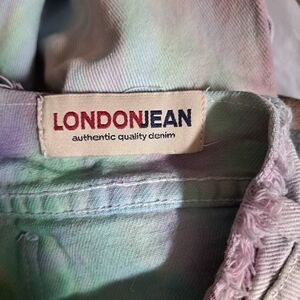 London tye dye jeans. frayed waist and ankles. waist size side to side is 16" rise is 9" inseam is 24"