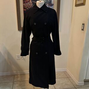 London Fog Black Long Double Breasted Trench Coat w/ Matching Belt Size 6P