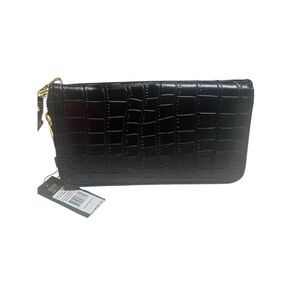 London Fog Collection Black Adalia Croco Zip Around Wristlet Wallet NWT