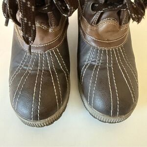 London Fog Milly Women's Brown Faux Leather Waterproof Winter Duck Boots Size 10