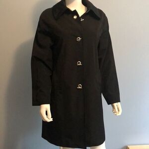 This is a polyester shell which makes me believe it is water đź’¦ resistant. It is a quality made item as evidenced in the details. I love the reinforced buttons. Great length!