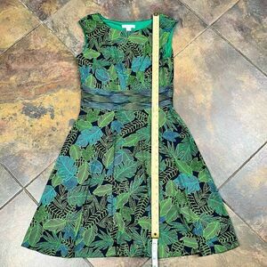 London Times Sleeveless Leaf Tropical Dress 10. Measurements in photos. In good, pre-loved (used) condition.