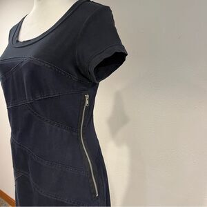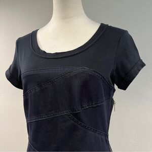 Key words : casual short sleeve denim dress knee length dress scoop neck dress