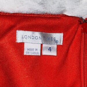 London Times Orange layered cute V-neck sleeveless dress with nylon lining. Has back zipper
