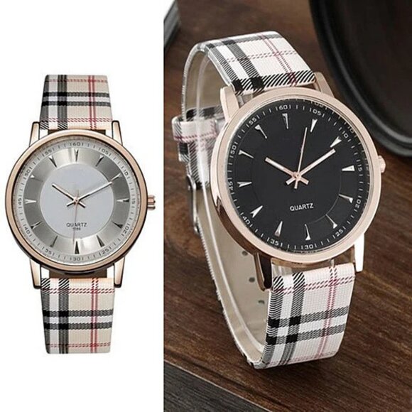 Londonite Plaid Band Fashion Watch • Quartz Movement • Trendy Casual Accessory