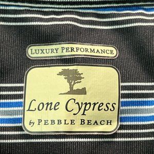 Lone Cypress Pebble Beach Golf Polo Shirt Men's Medium Blue Striped Short-sleeve Luxury Performance *