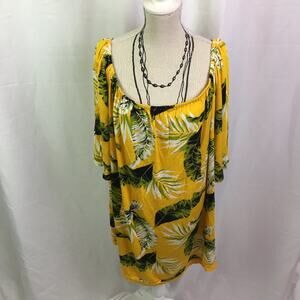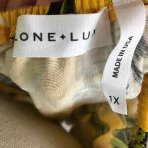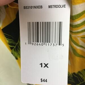 Lone & Lux Leaf Pattern Top Yellow Green 1X