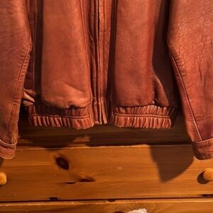 This is an authentic vintage Lone Pine Leather jacket. It retails for $2500. The quality is amazing and you can feel it by the supple and soft leather. It does have a little wear (some lightening of the leather near zipper and sleeve cuffs) and has a stain on the underside of the left sleeve but it’s not noticeable when wearing. I think it was from wine. Otherwise the jacket is in amazing condition! I’m not sure if it’s a womens or mens jacket but it is a size 40. I am 5”6 and 125 lbs and it’s big on me.
