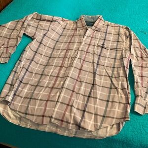 Lone Roo by Roper Dress Shirt. Size large. Pale burgundy with burgundy, white, and blue stripes. Great used condition