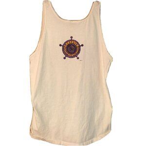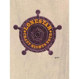 This is a vintage Lone Star 1997 tank top featuring autographs from all band members of the Crazy Night Tour. The tank top is sleeveless with a white color and made of cotton material. It has a regular fit and a size M for men. The design is simple with no neckline specified, making it a versatile piece for casual wear. Ideal for fans of the band looking for a unique and nostalgic addition to their wardrobe.