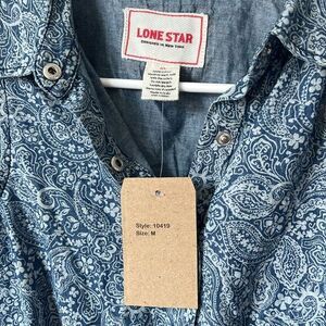 Lone Star Tie Front Sleeveless Button-Up Tank Handkerchief Print Blue Medium NWT