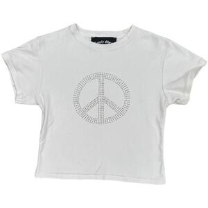 Lonely Ghost Bedazzled Peace Sign Crop Tee - EUC, no flaws