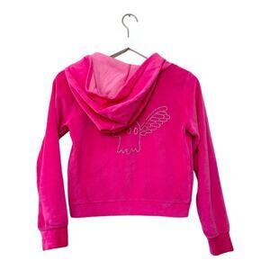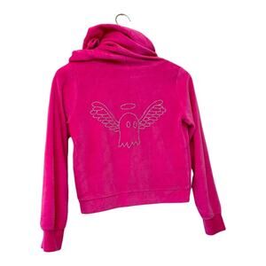 Lonely Ghost Pink Velour Rhinestone Angel Ghost Zip Hoodie Size Small