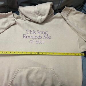 Lonely Ghost “This Song Reminds Me of You” hoodie in cream/beige with purple graphics. Features front text and full back “Different Ways to Say I Love You” flower print. Soft fleece interior and classic oversized Lonely Ghost fit. Harder-to-find design from one of their limited drops. Excellent condition.