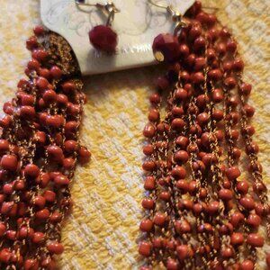 This beautiful coral colored necklace can be worn many ways. Its really a fun piece with matching earings. Smoke and Pet Free home. If you want more photos or information just let me know. New never worn still has tags.