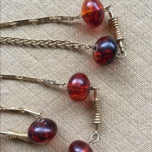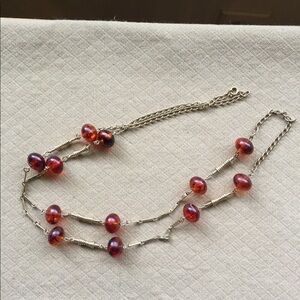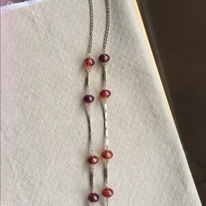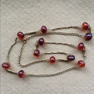 Long 40” Necklace Amber Beads Gold