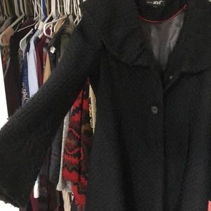 This is an Long coat in very good condition! It’s very nice warm comfy soft silky inside! Three buttons to button in the front! This looks great with some boots! Great great coat.