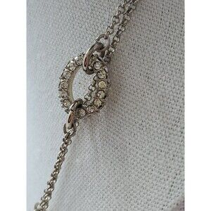 Long Ann Taylor 40" Rhinestone Pave Crystal Necklace VIntage Silver Tone Boho