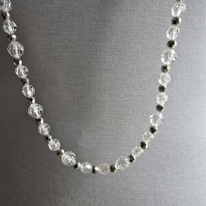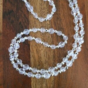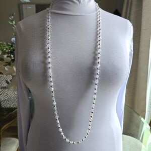 Long Beaded Clear and Silver Necklace 48" Handmade
