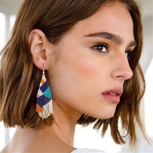 Long Beaded Drop Dangle Earrings Boho Native Handmade Seed Bead Tassel Earrings