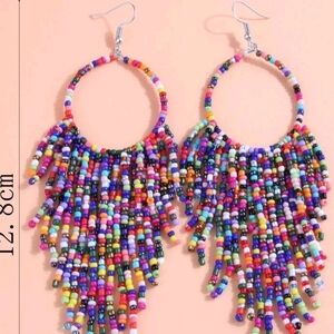 Long Beaded Tassel Earrings Bohemian Handmade Seed Beaded Round Tassel Dangle